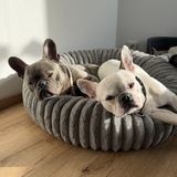Sind zwei Französische Bulldoggen Männchen. Beide super lieb aber ziehen etwas beim Gassi gehen.